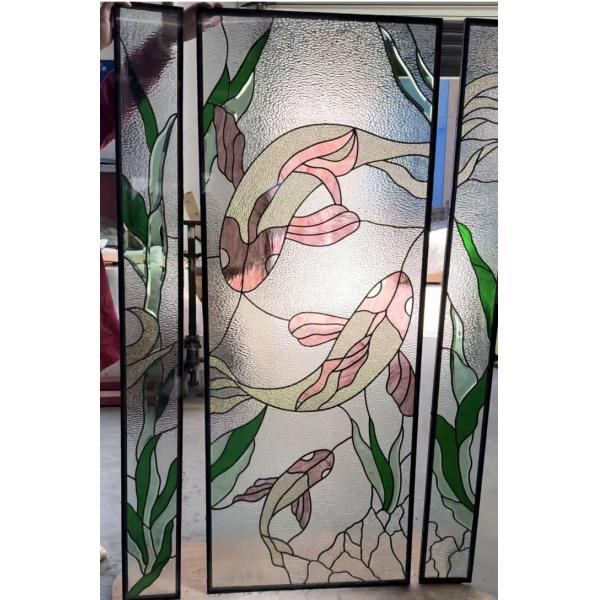 Custom Koi Design Entry Door Glass Insert Decorative Glass Panel Beveled Glass Images |